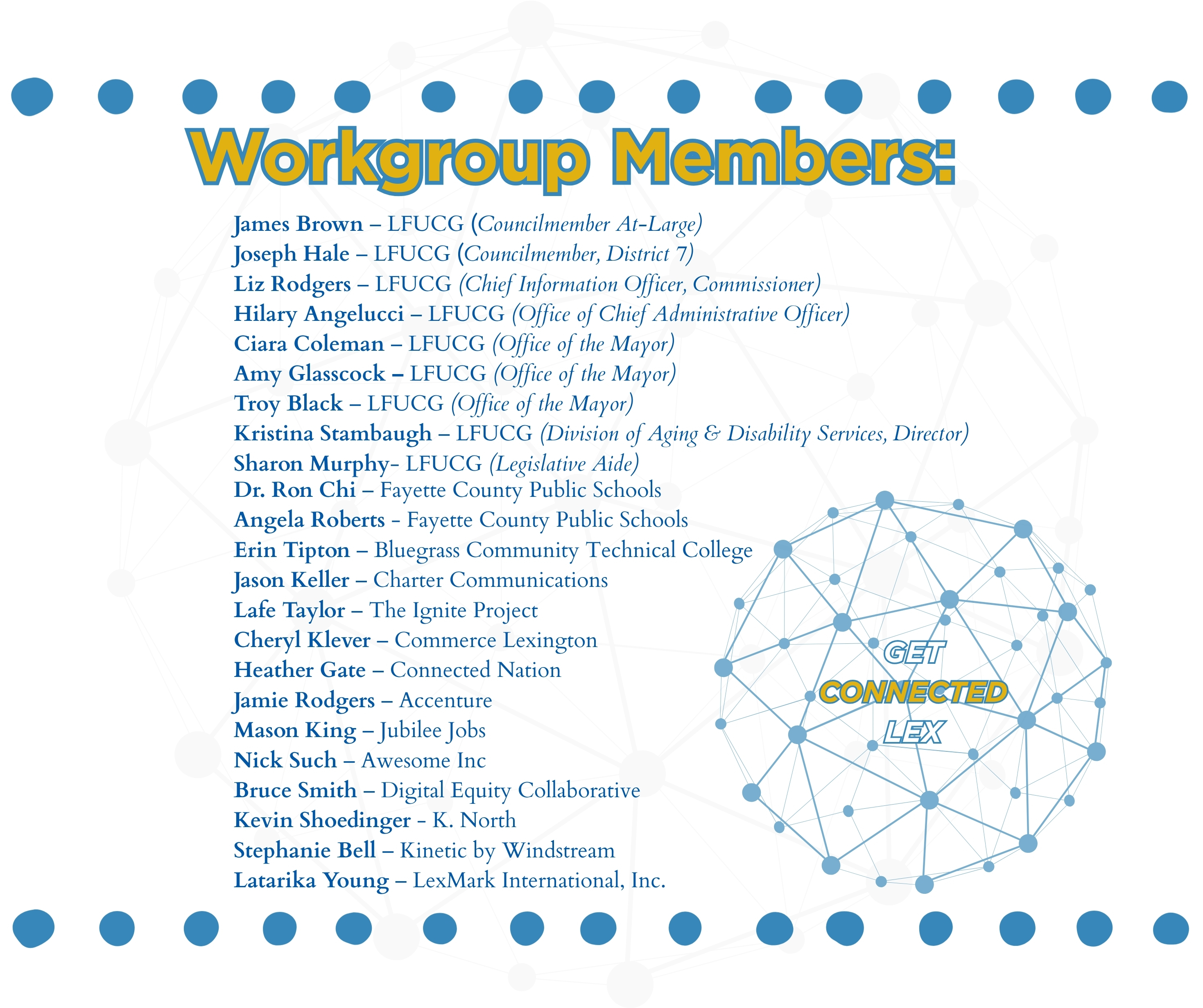 Lexington's Digital Accessibility Workgroup envisions, "a thriving Lexington where every resident, regardless of age, background, or location, has access to affordable broadband, reliable devices, and the skills to navigate the digital world. By leveraging technology and collaborative partnerships, we aim to unlock new economic opportunities, improve health outcomes and enhance educational experiences."